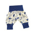 Vier Designs: Die verschiedenen Designs der Pumphosen sind kindgerecht und geschlechtsneutral. Die einfärbigen Bündchen bilden einen Kontrast zu den verspielten Motiven. Nur der Jersey-Stoff des Hauptteils wird bedruckt. Der Einsatz von Farbstoffen wird somit minimiert und der natürliche Grundton der Baumwolle bleibt erhalten.